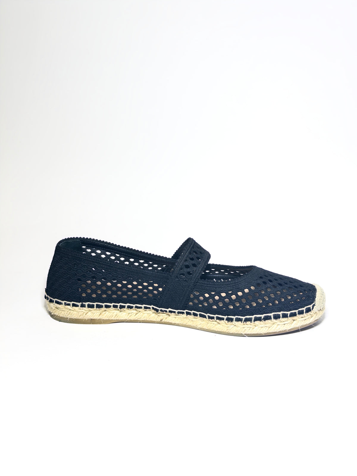 Lightweight black slip-on mesh espadrilles.