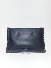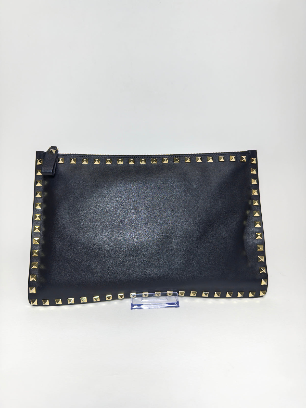 Black clutch in soft calfskin leather and signature rockstud detailing.