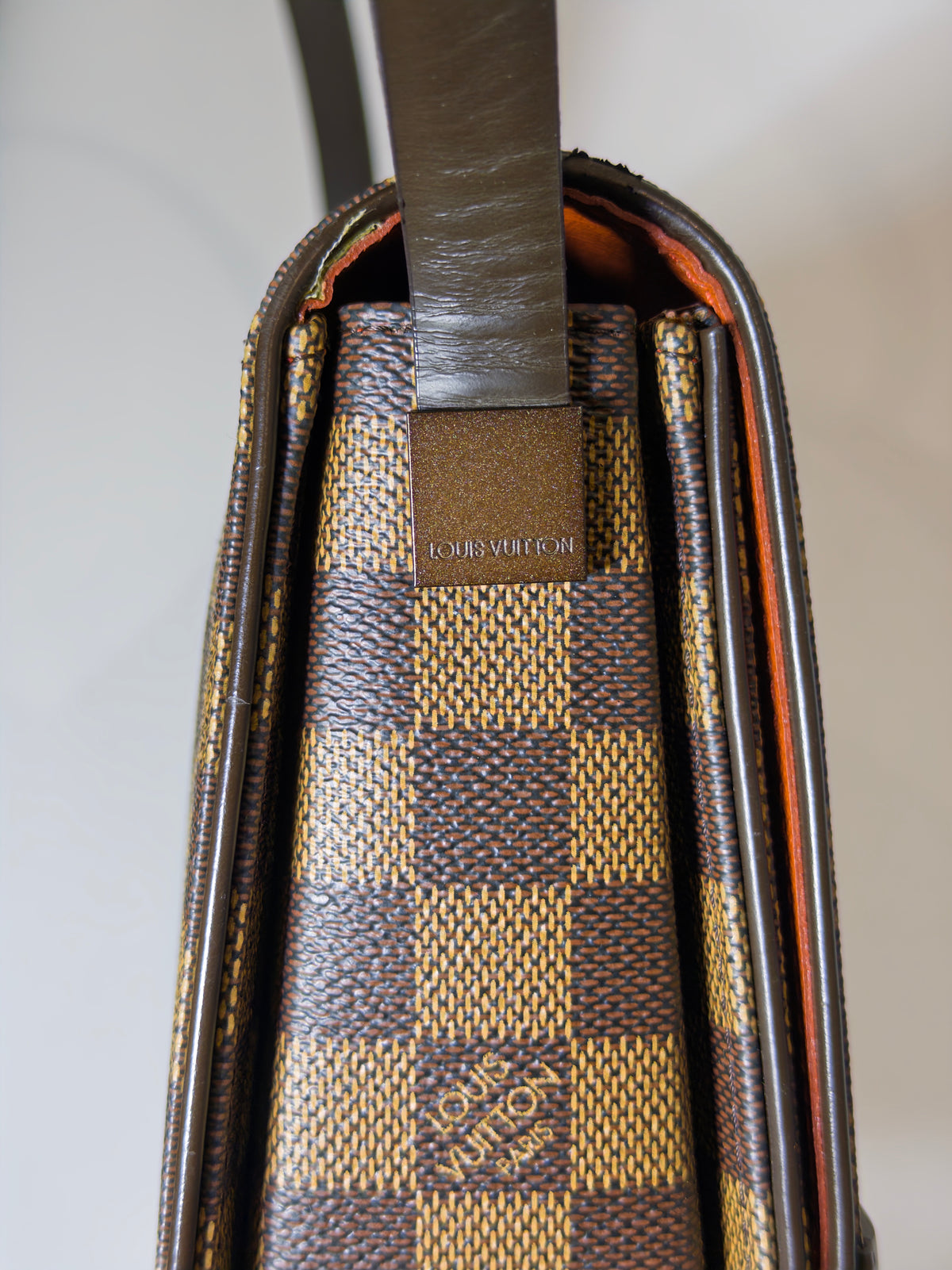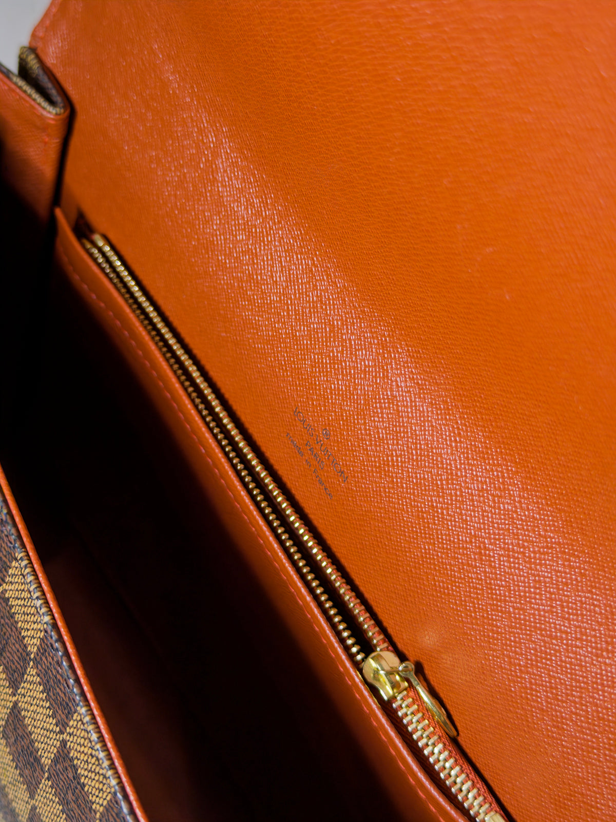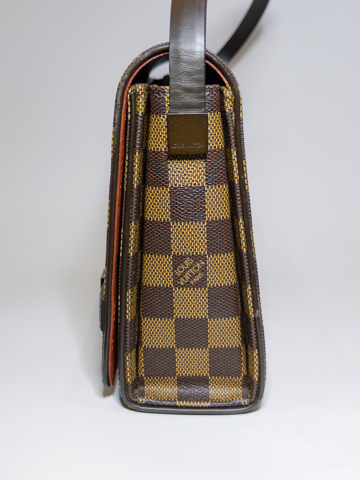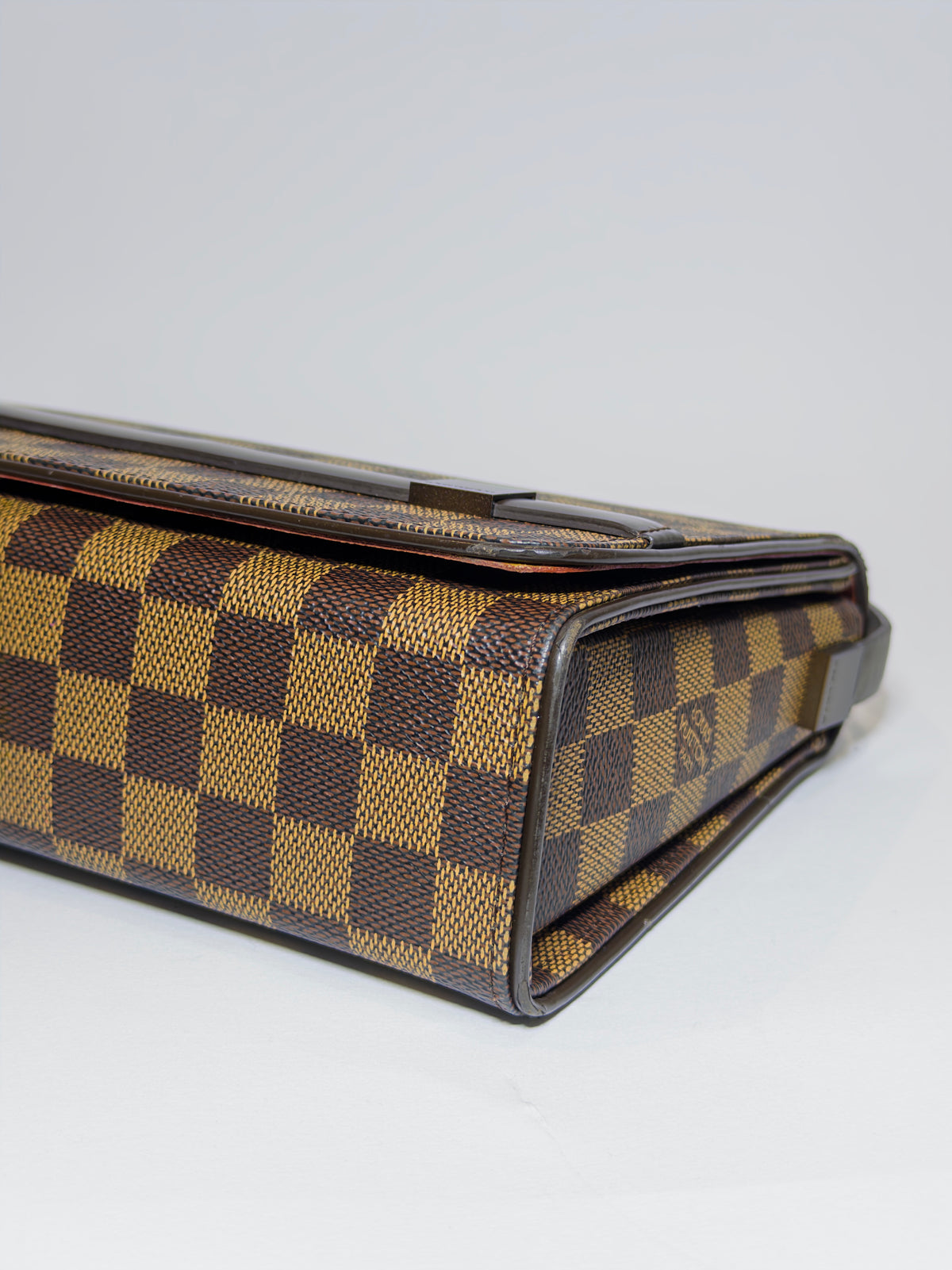 Damier canvas with non-adjustable short shoulder strap, single compartment, and subtle Louis Vuitton hardware.
