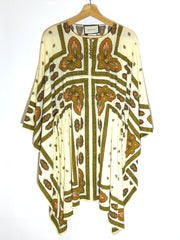 Cream base with paisley and geometric motifs kaftan with side ties, relaxed fit, and flowing cut.