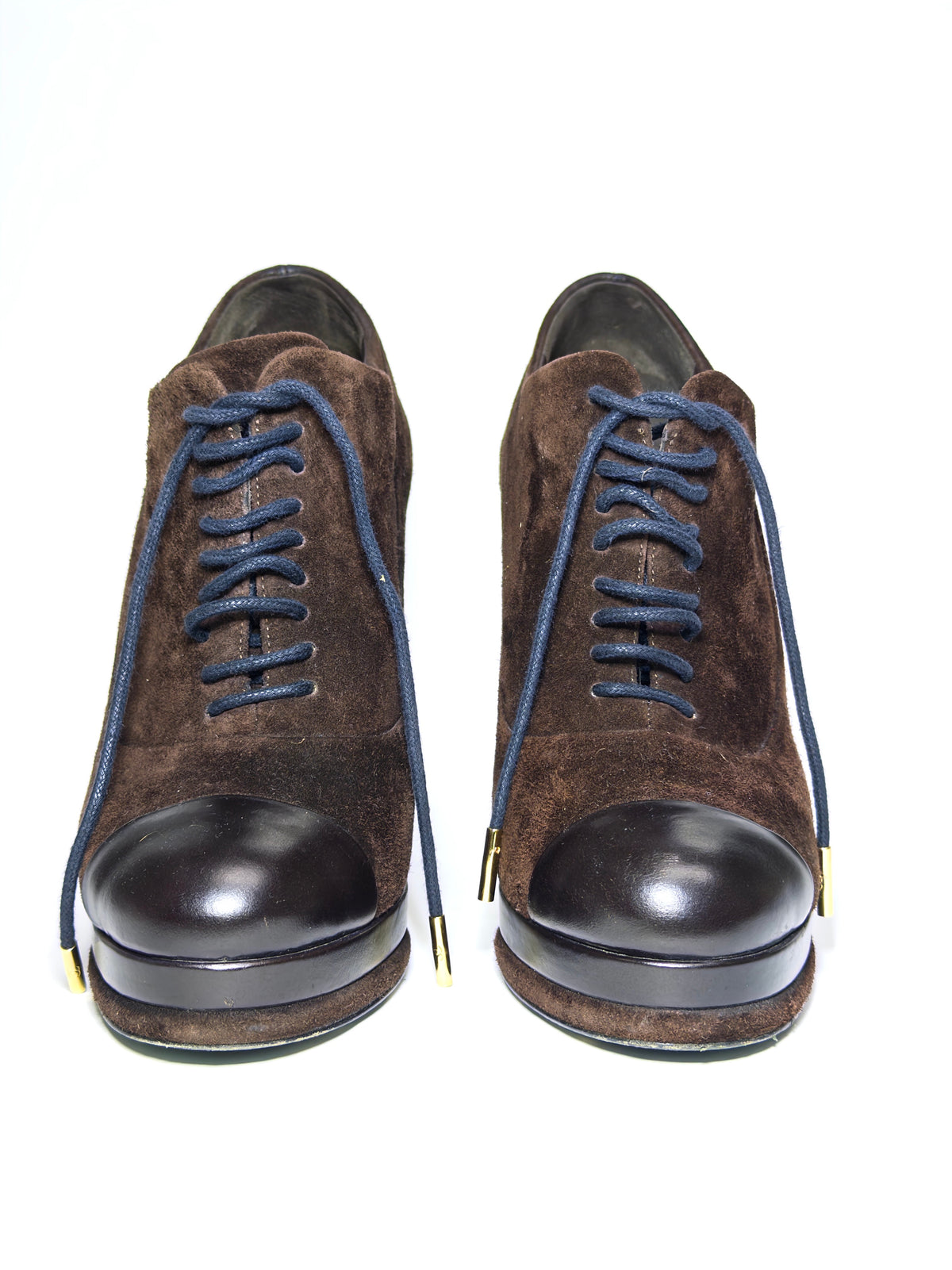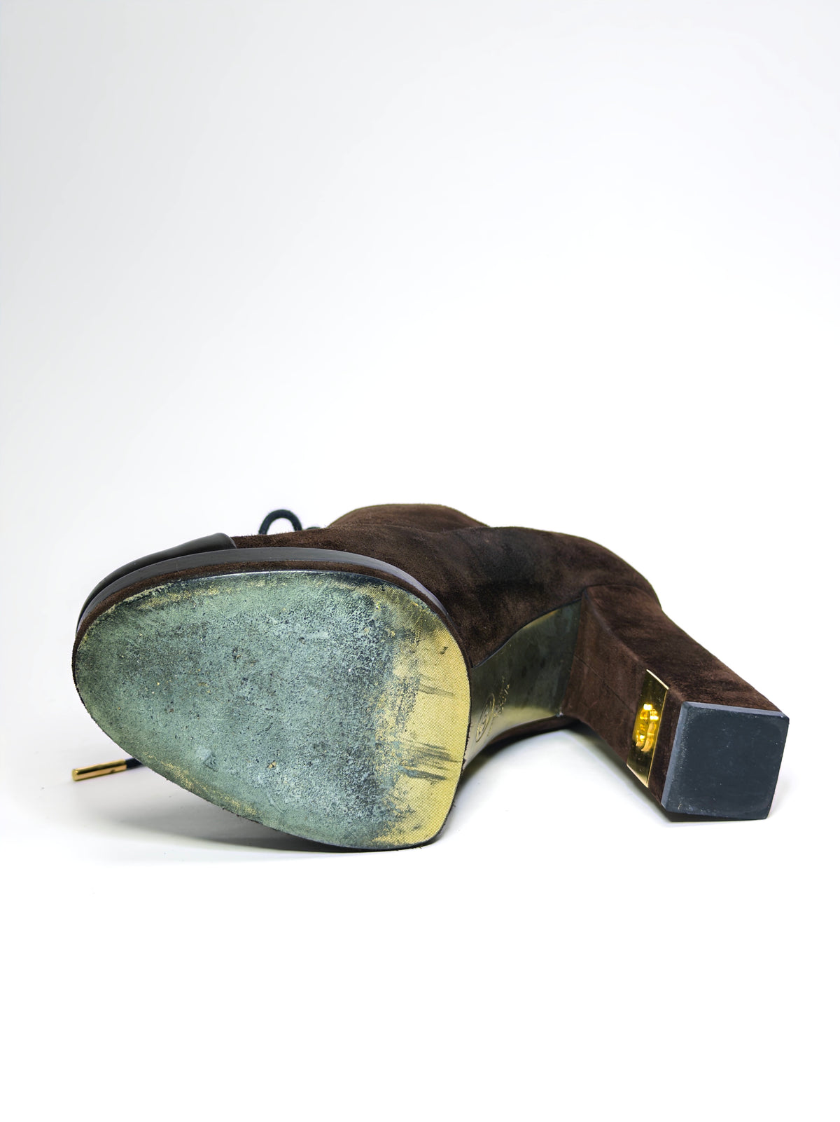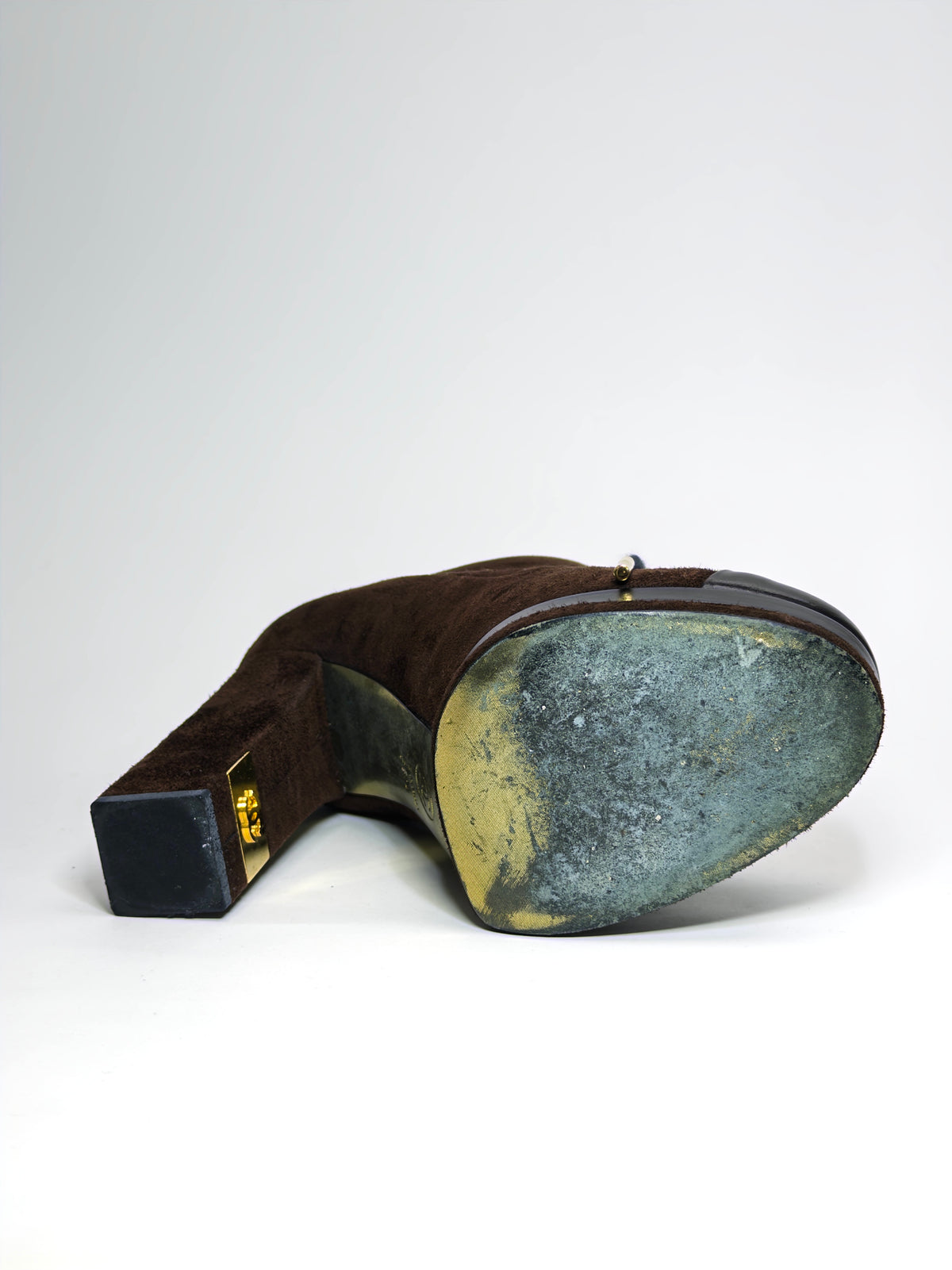 Inform when this item available Chanel Brown Suede and Leather Cap Toe Platform Ankle Boots