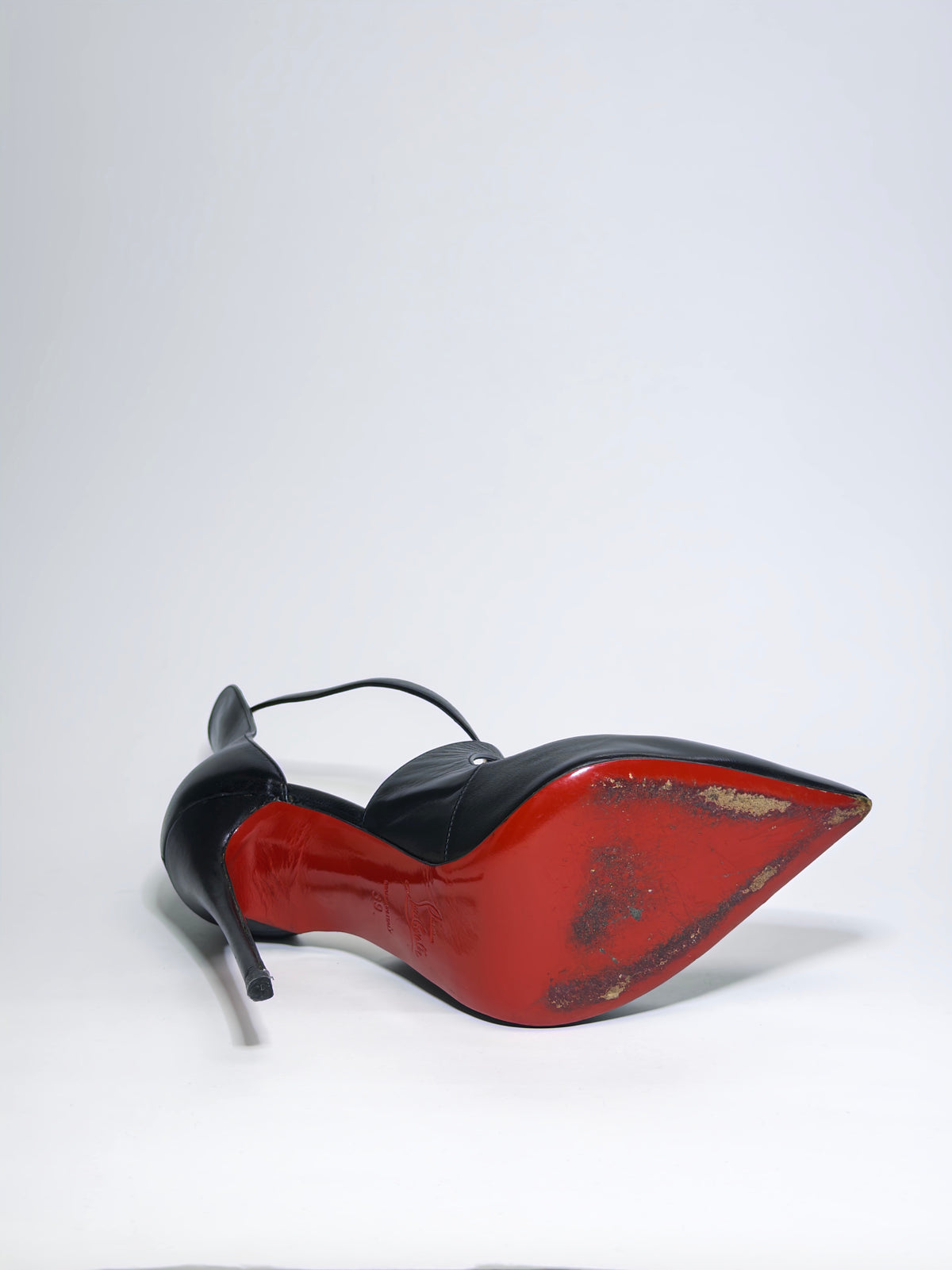 Criss-cross straps pumps with buckles on 12.5 cm heels.