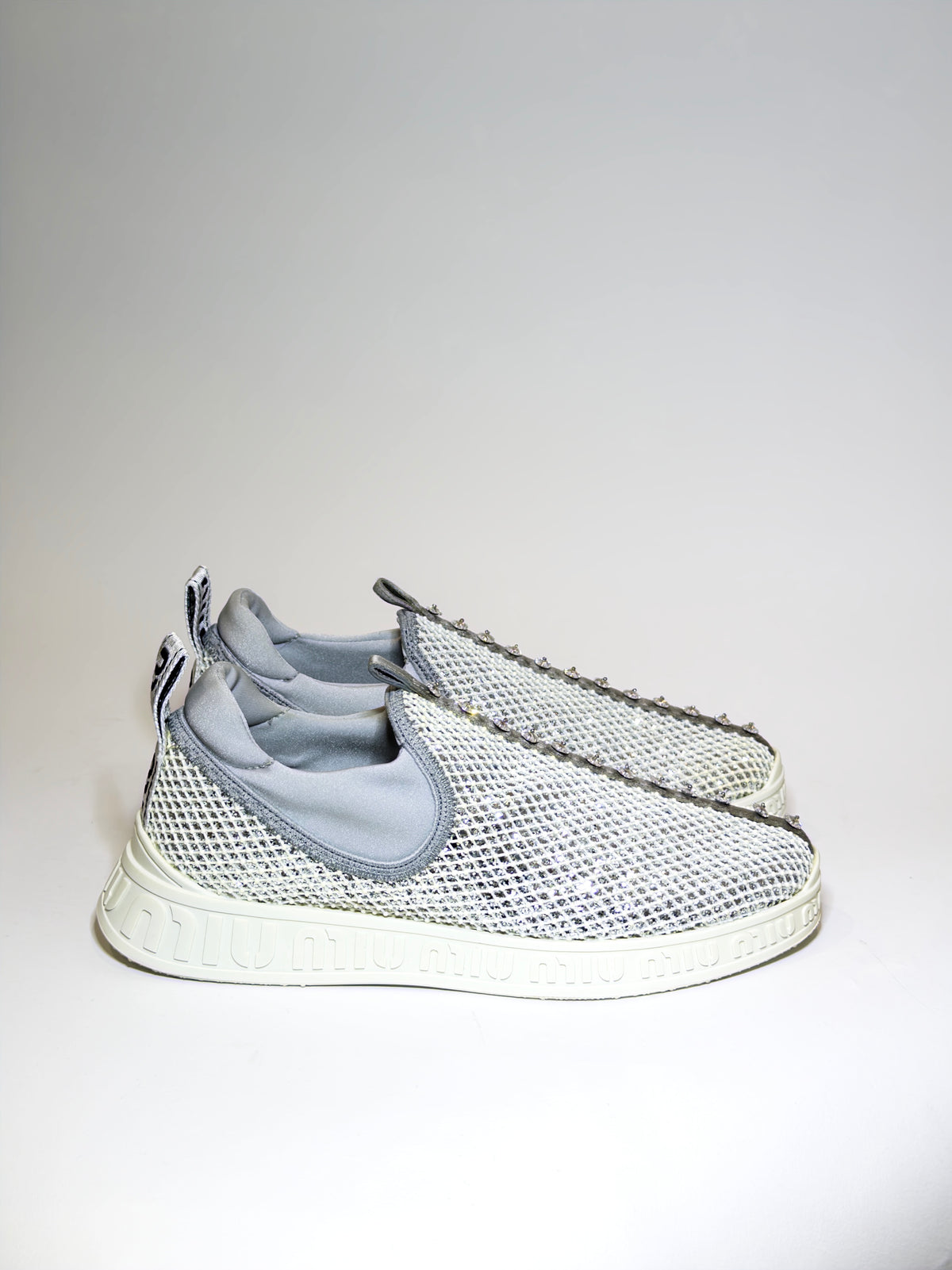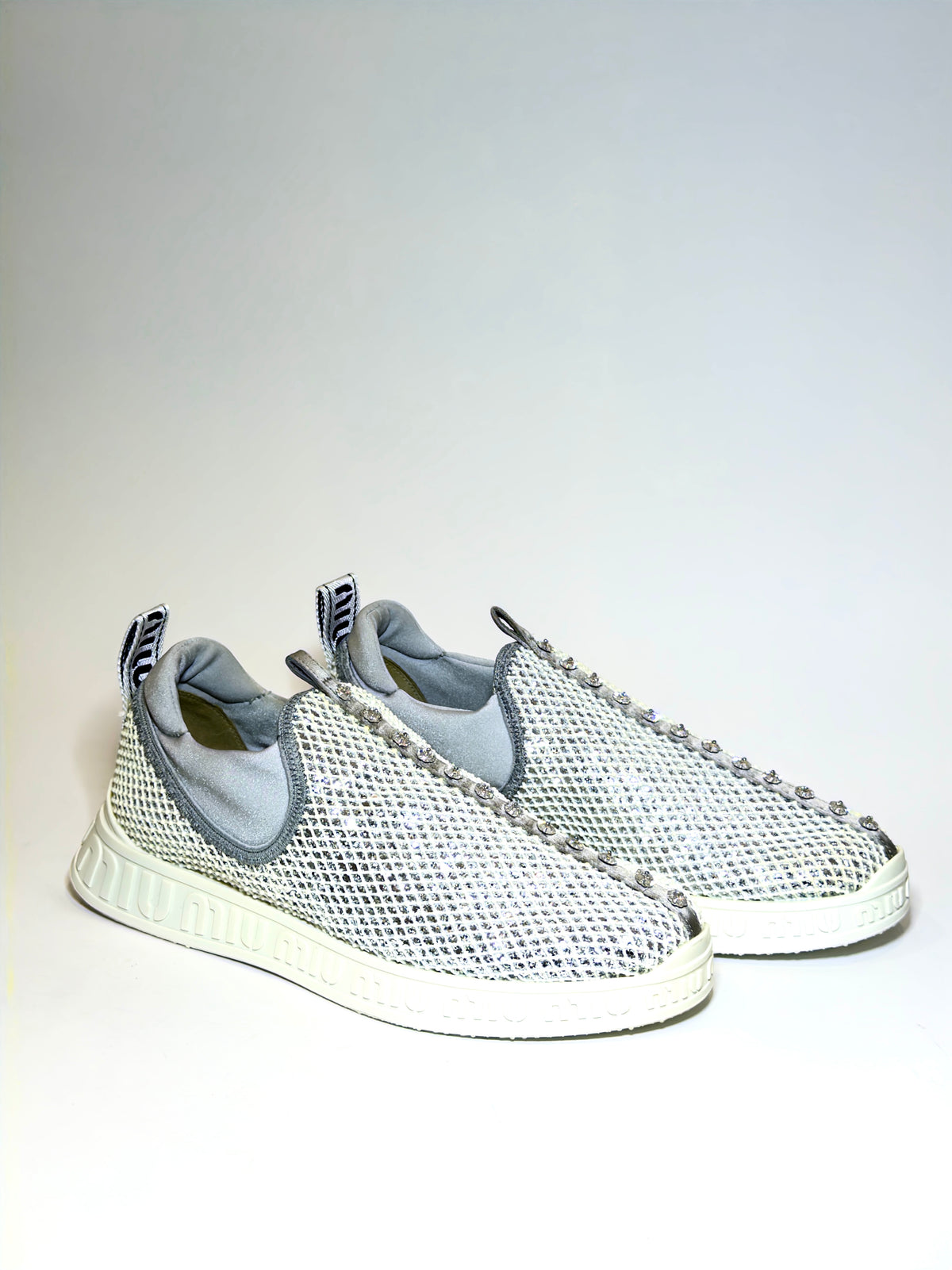 Miu Miu Glitter Crystal Embellishments Sneakers